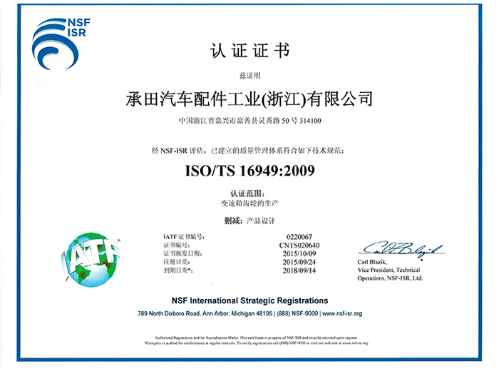 ISO認證證書